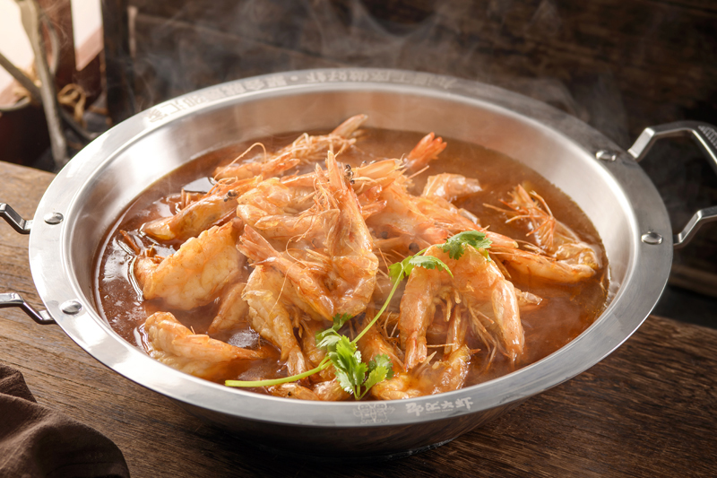 食材精選進口大蝦,搭配秘制底料制作而成,研發出一鍋兩吃的飲食模式(先吃蝦后涮菜,葷素搭配隨心選),打造出綠色健康的飲食新文化。